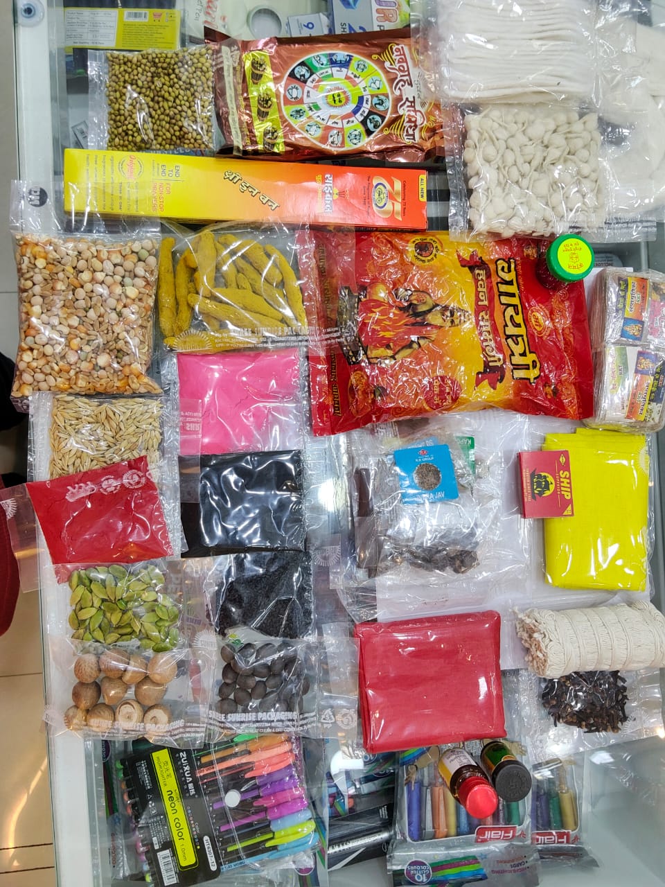 काला तिल 100g, जौ 100g, हवन pkd 100g, कमलगट्टा 50g, guggal 50g, शुद्ध आम की लकड़ी1kg, नवग्रह समिधा, पीली सरसों50g, गरी गोला 1, गोमूत्र, केले के चार खंभे,